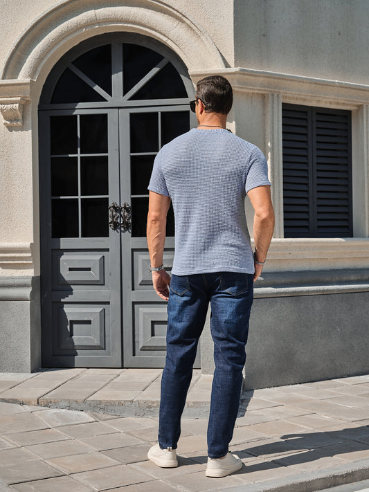 Men's Casual T-Shirt Short Sleeve Crew Neck See Through Soft Knit Tee Shirts Summer Beach Mesh Waffle Textured Tops