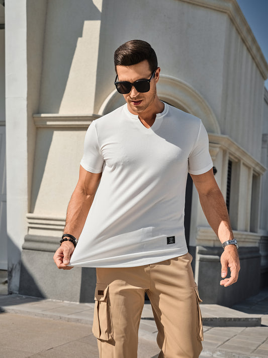 Mens T-Shirts Short Sleeve V Neck Henley Shirt Muscle Fit Gym Workout Athletic Fresh Clean Classic Tees